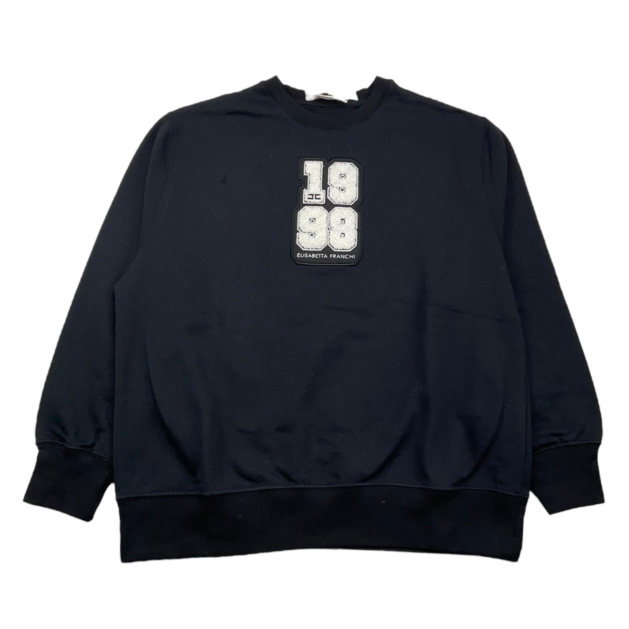 ELISABETTA FRANCHI felpa chiusa girocollo tinta unita con stampa in contrasto Nero per Bambina