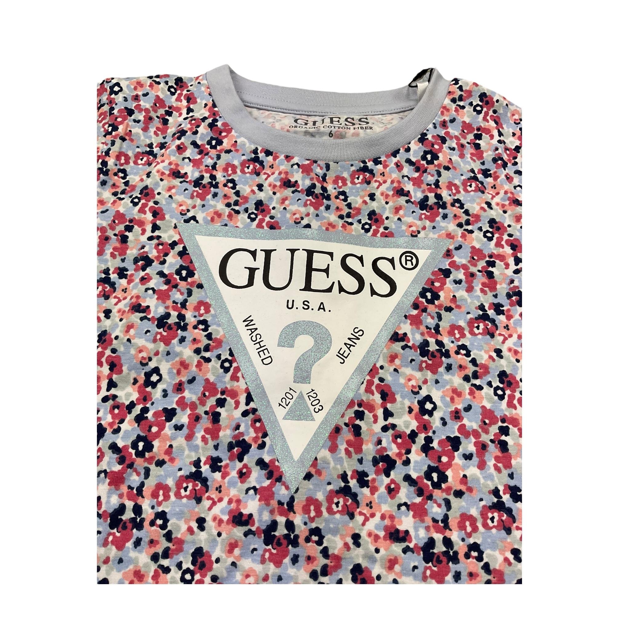 Guess T-Shirt Girocollo Tinta Unita con Stampa per Bambina