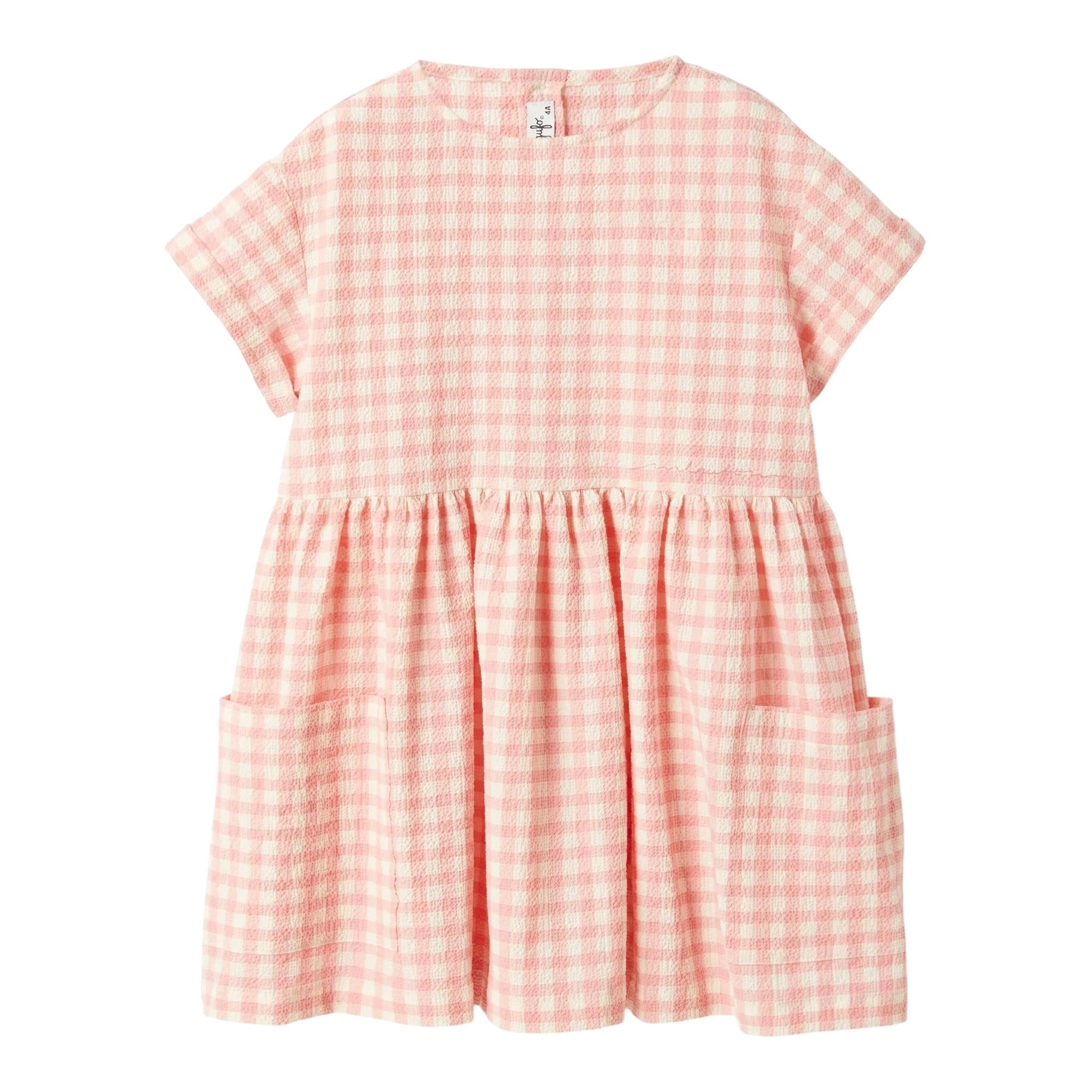 Il Gufo Abito Tinta Unita con Fantasia Quadri per Neonata
