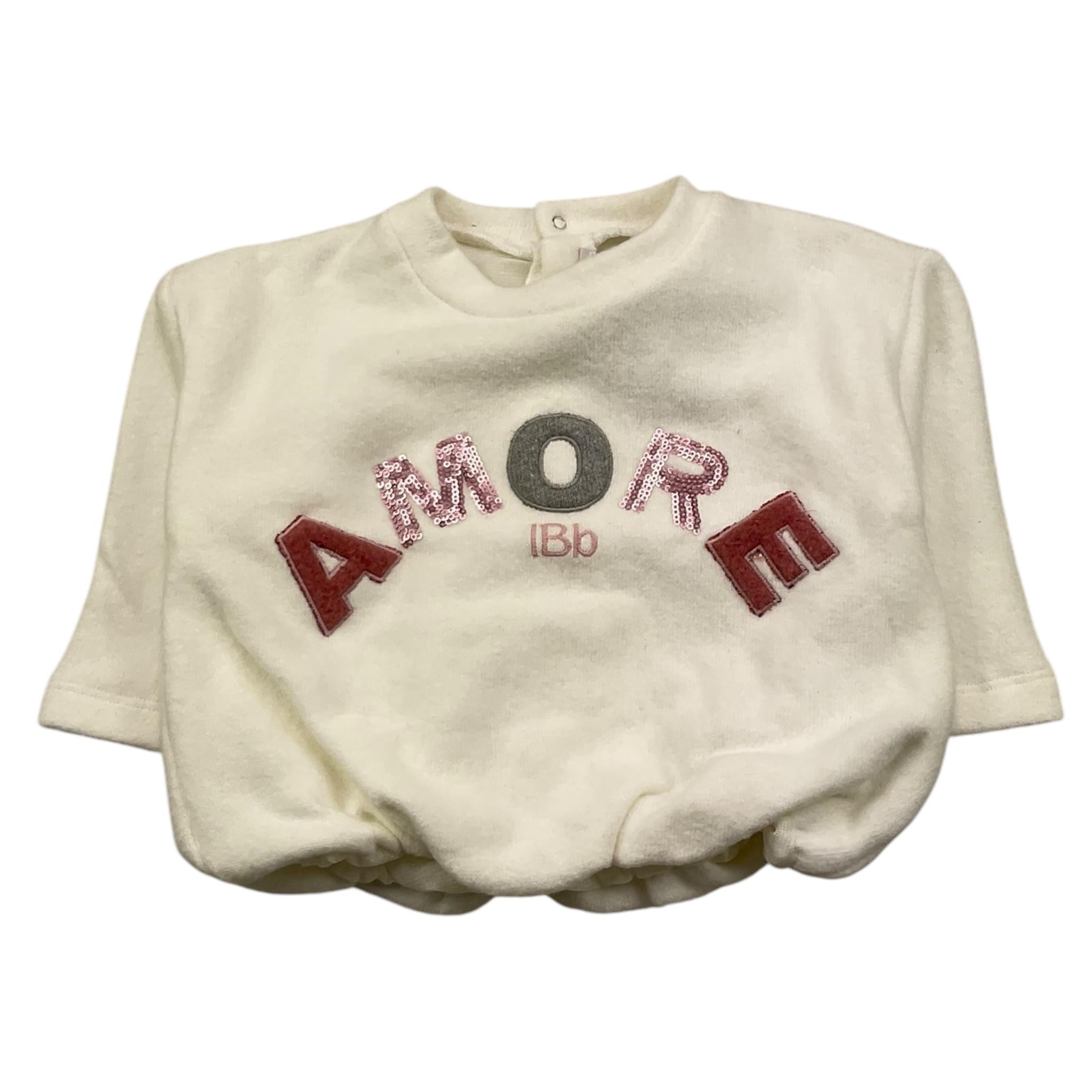 LE BEBE' felpa chiusa girocollo tinta unita con stampa paillettata Panna per Neonata