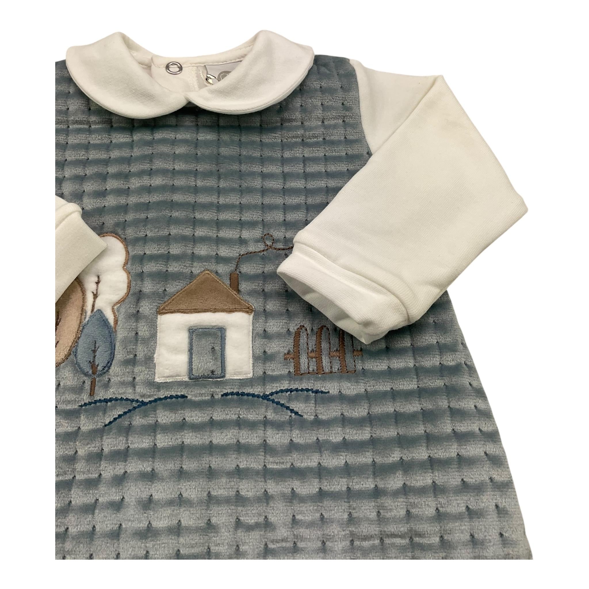 MARLU' tutina manica lunga bicolore in ciniglia Bianco/azzurro per Neonato