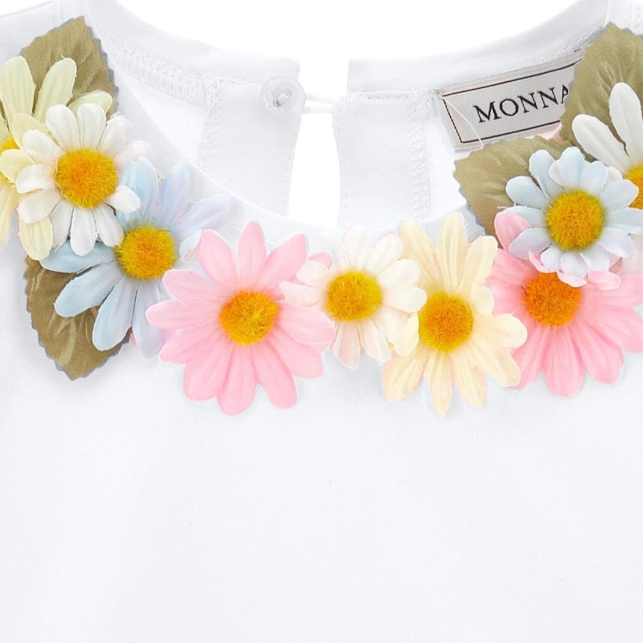 Monnalisa T-Shirt Girocollo Tinta Unita con Applicazioni per Neonata