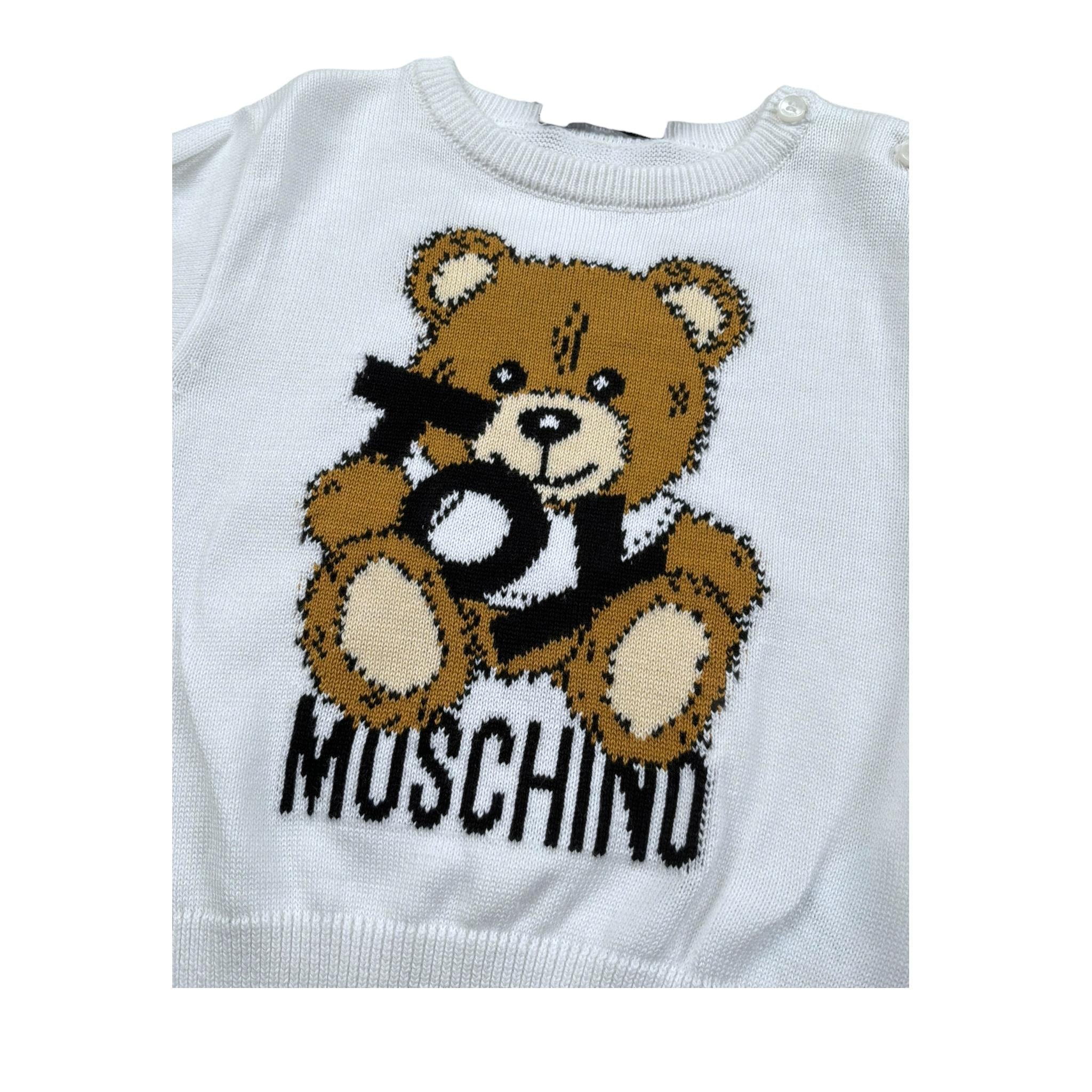 Moschino Maglia Girocollo Tinta Unita con Orso per Neonato