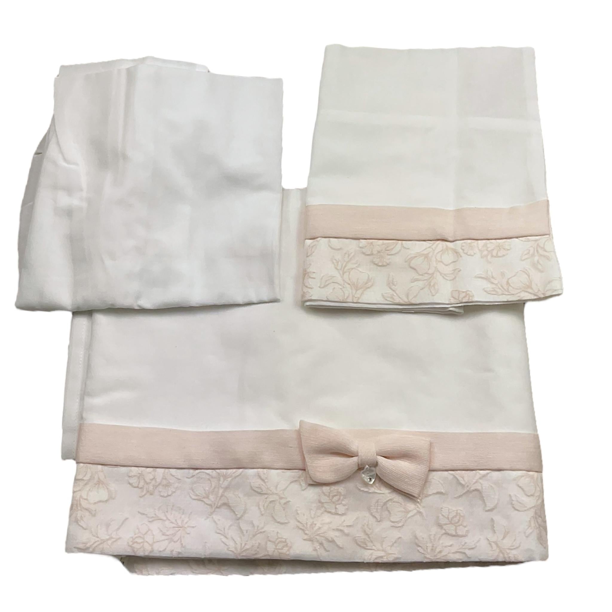 Ninnaoh Set 3 Pezzi Lenzuola Tinta Unita con Applicazioni per Neonata