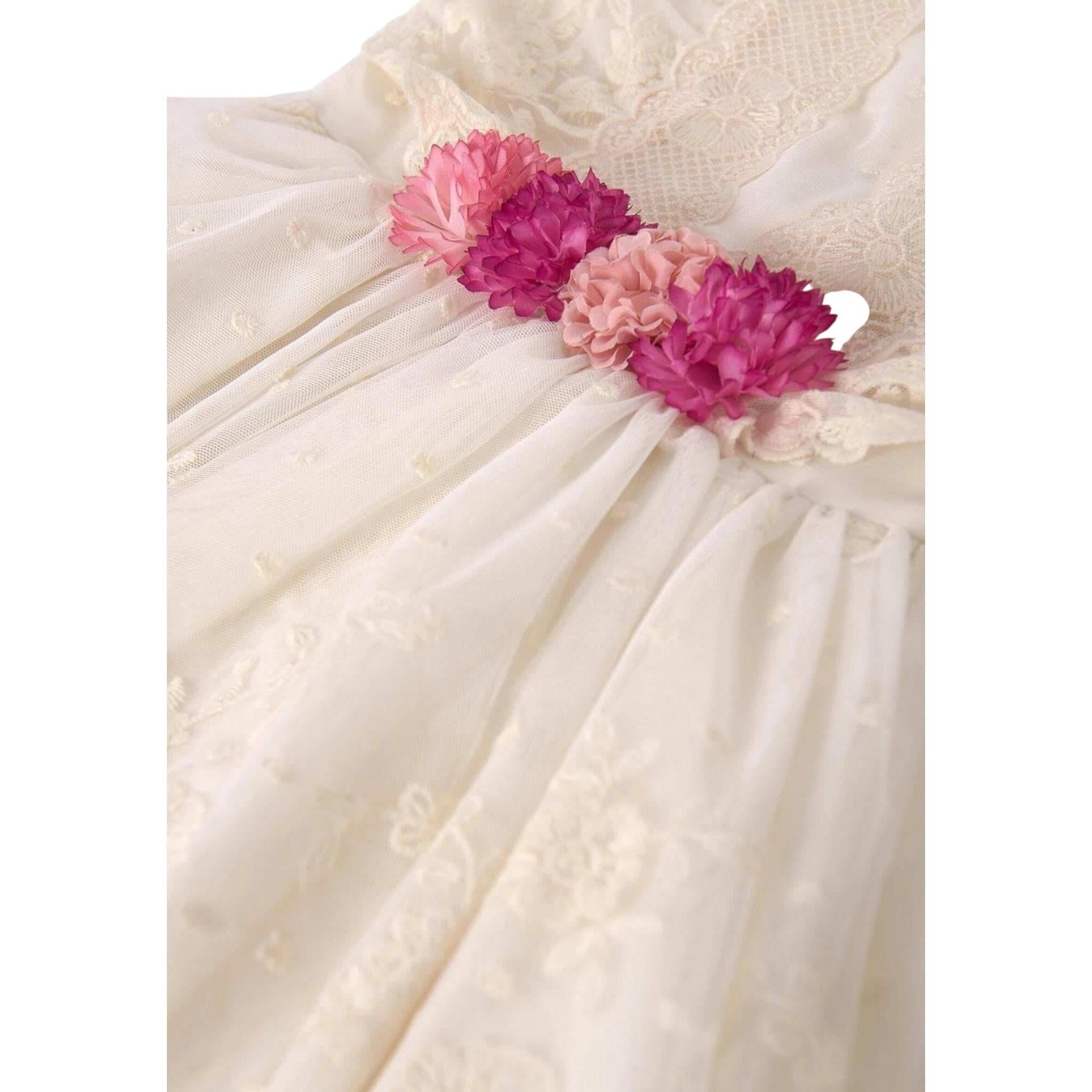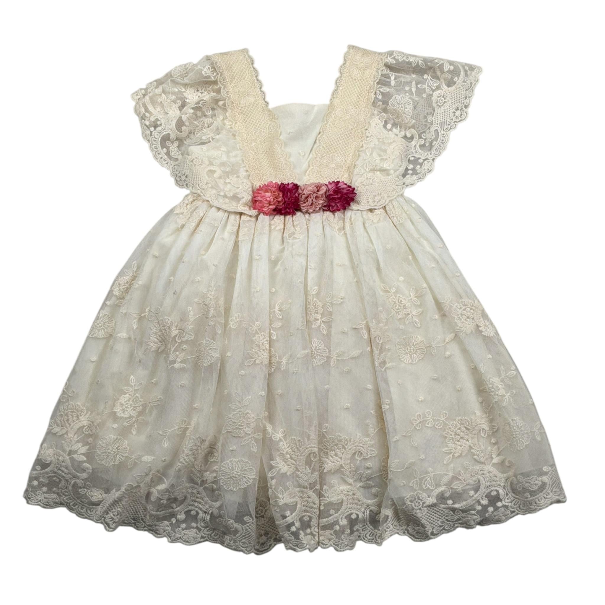 Abel & Lula Abito Mezza Manica tinta unita con Ricami Panna per Bambina