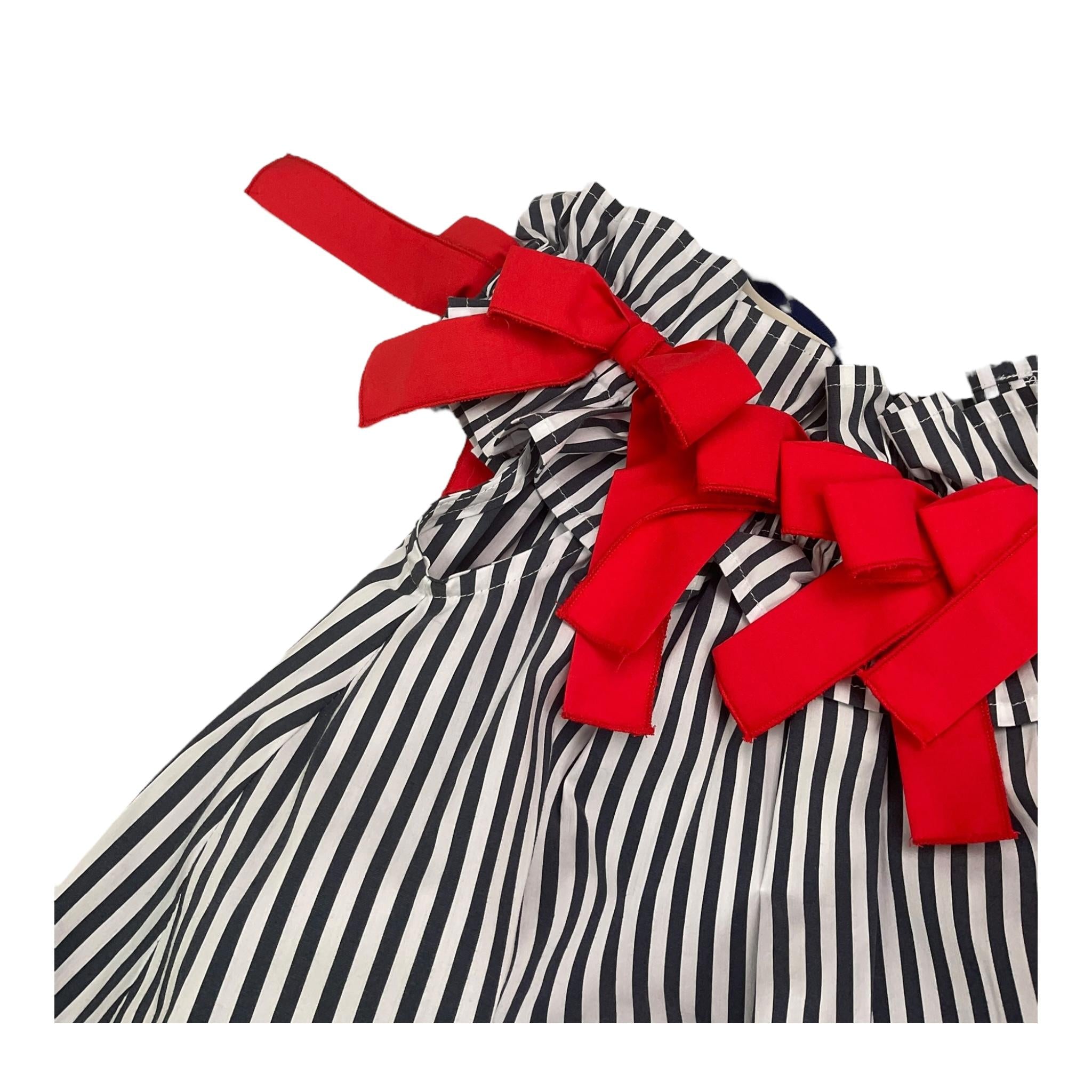 abito giromanica fantasia a righe con fiocchi in contrasto