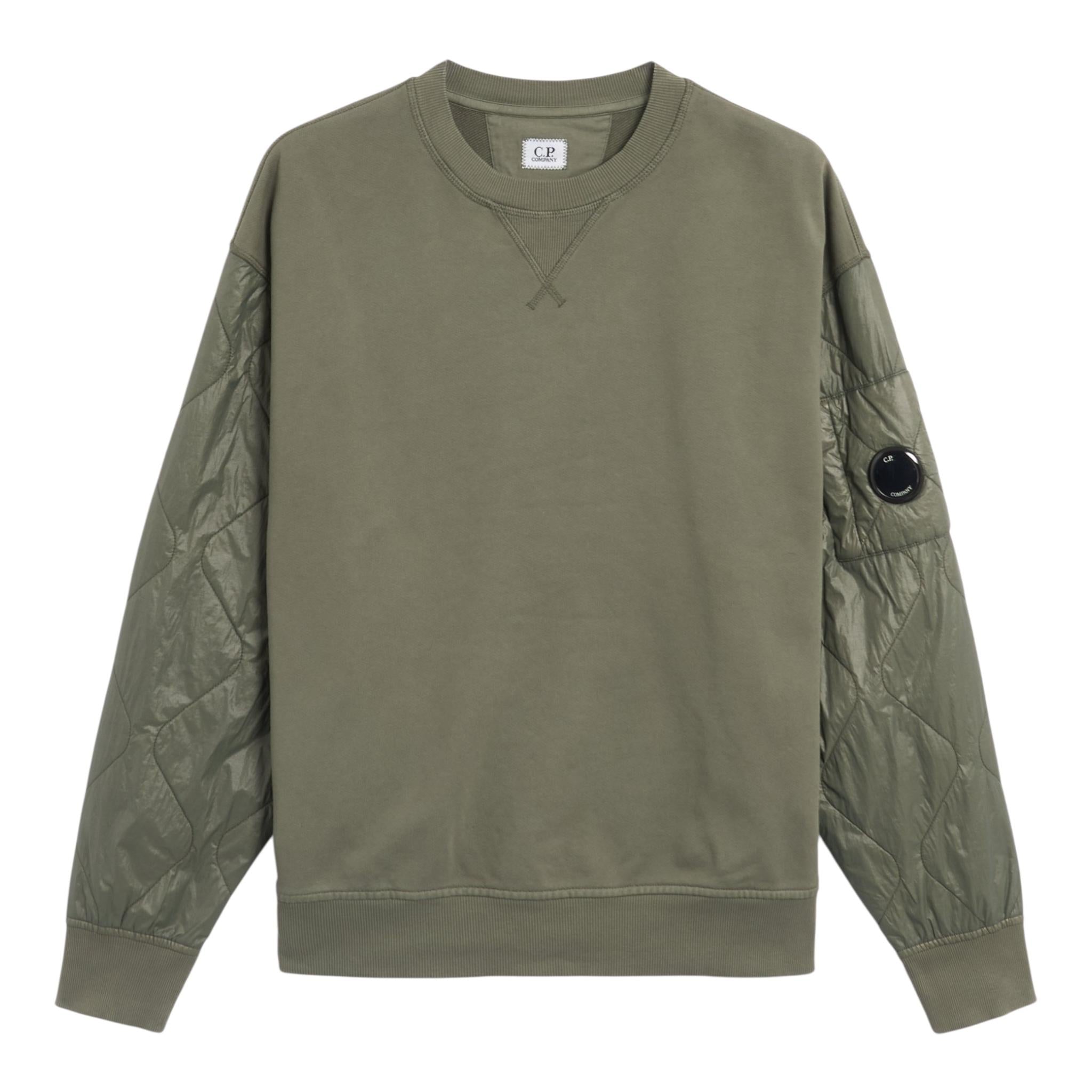 C.P. COMPANY felpa chiusa girocollo tinta unita con logo Verde per Bambino