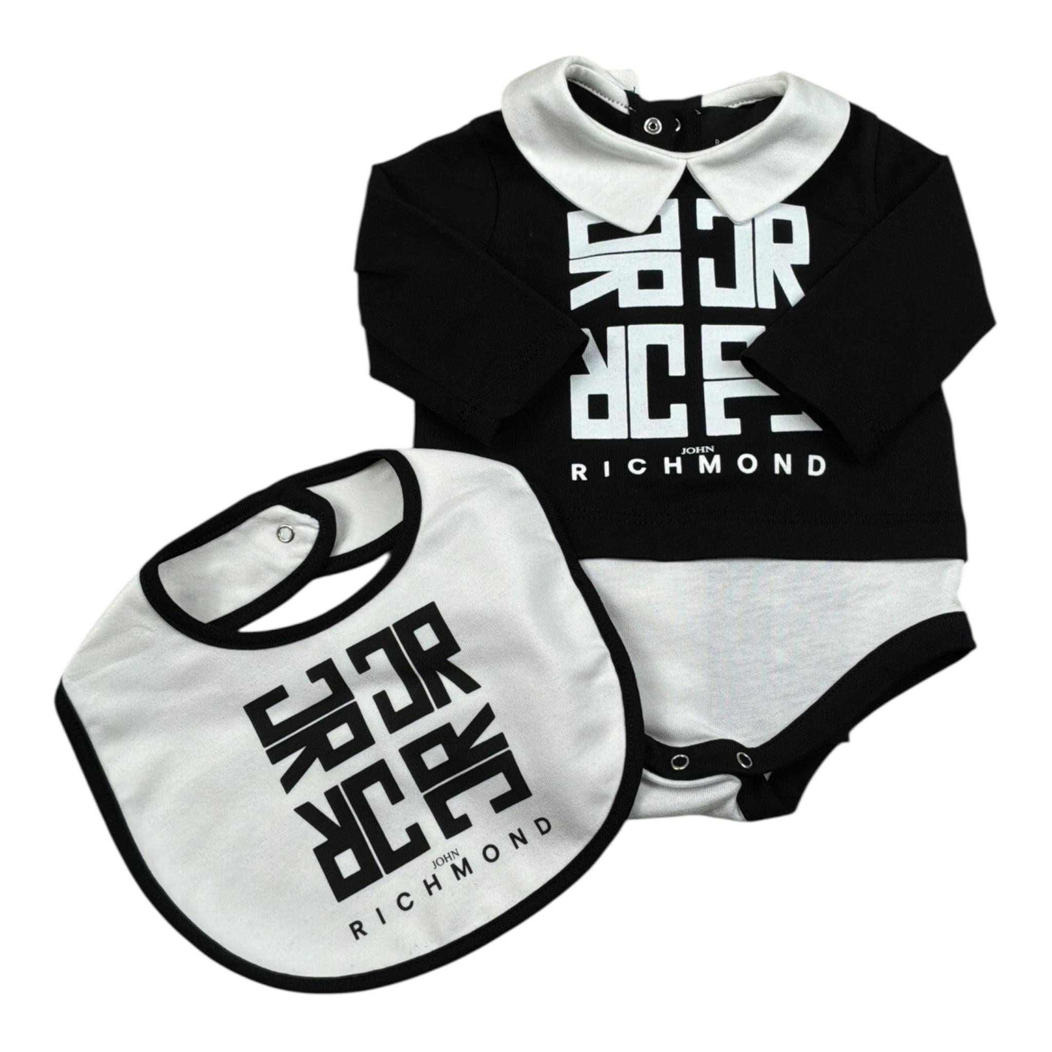 John Richmond Body Manica Lunga Tinta Unita con Cappello per Neonato
