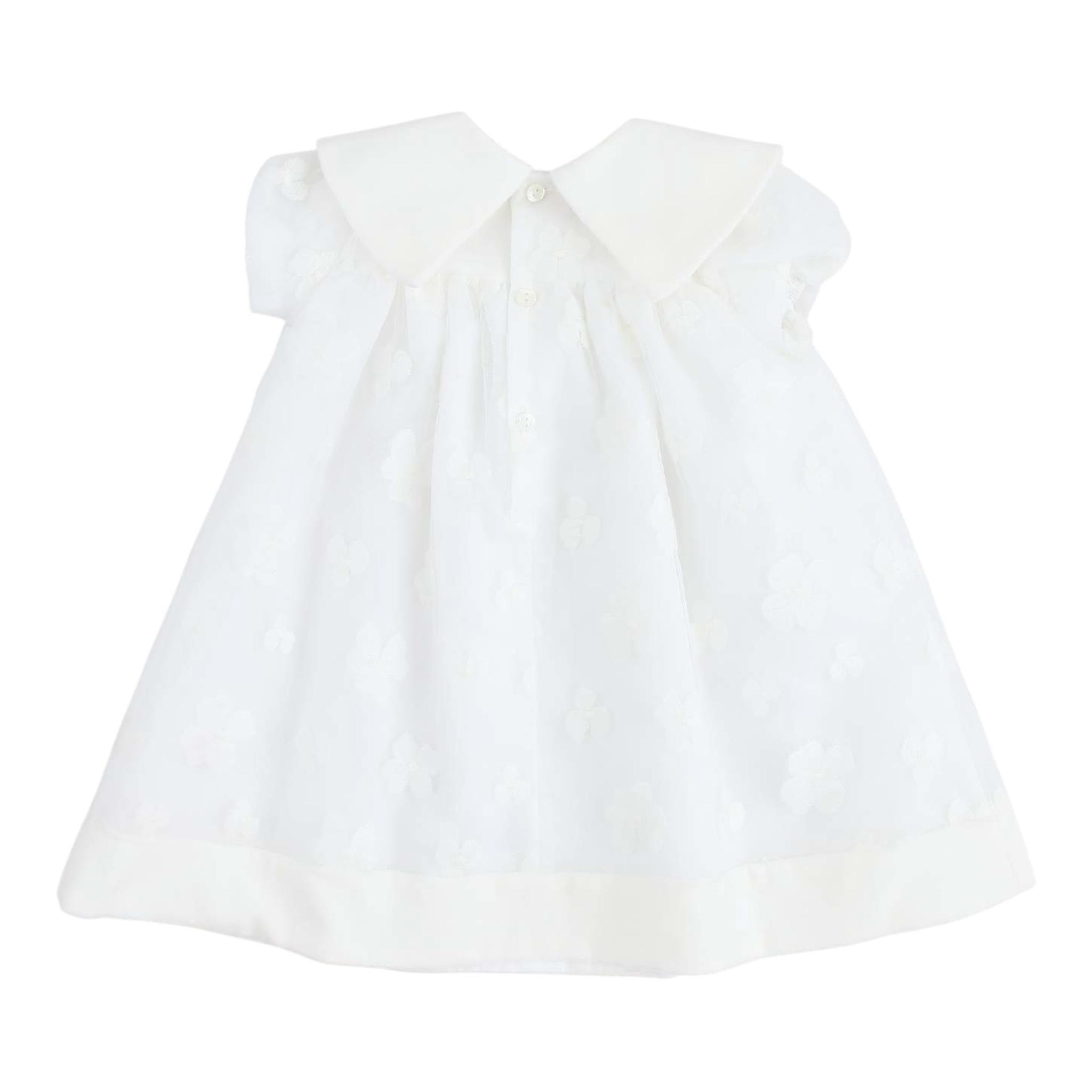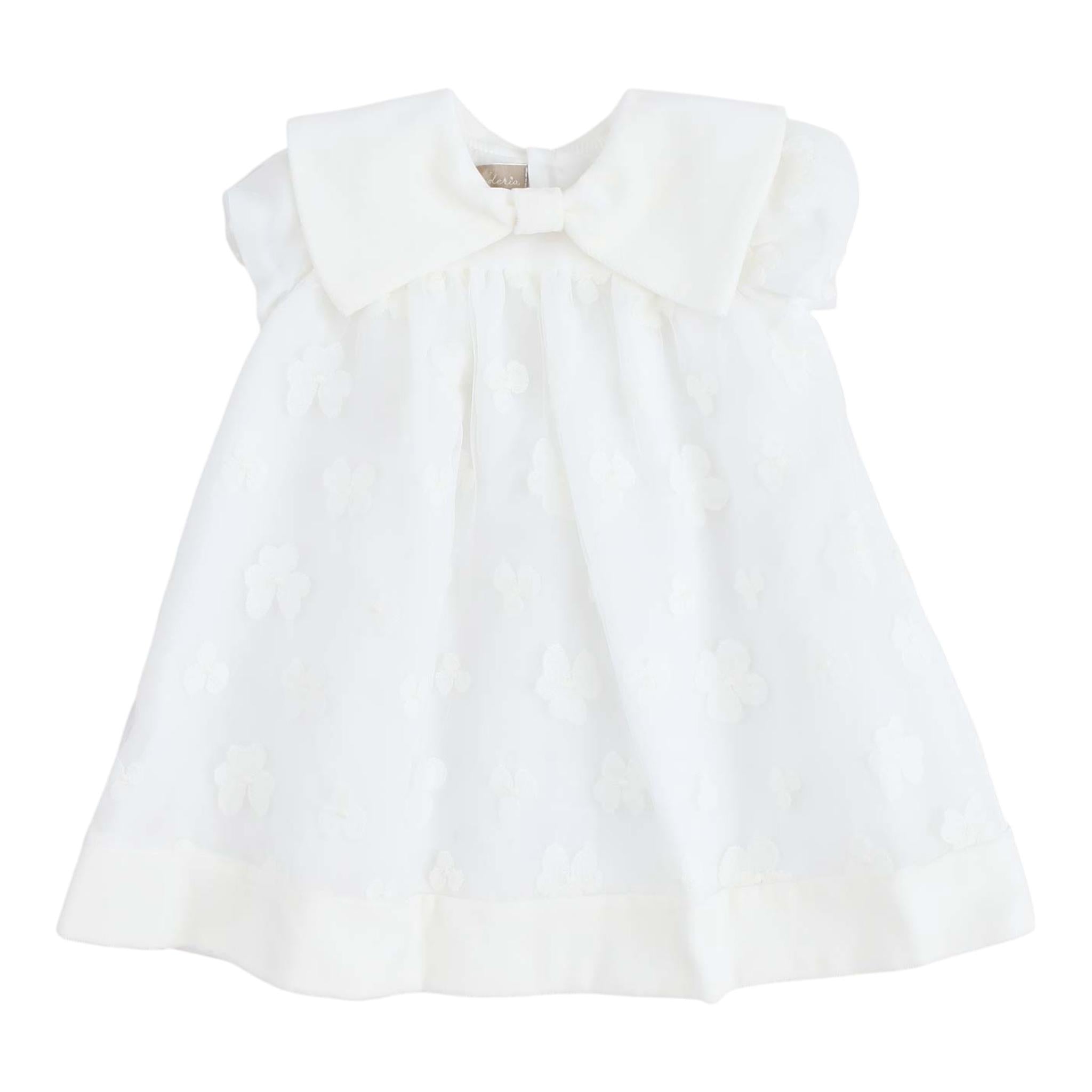 LA STUPENDERIA abito tinta unita mezza manica con ricami Bianco per Neonata