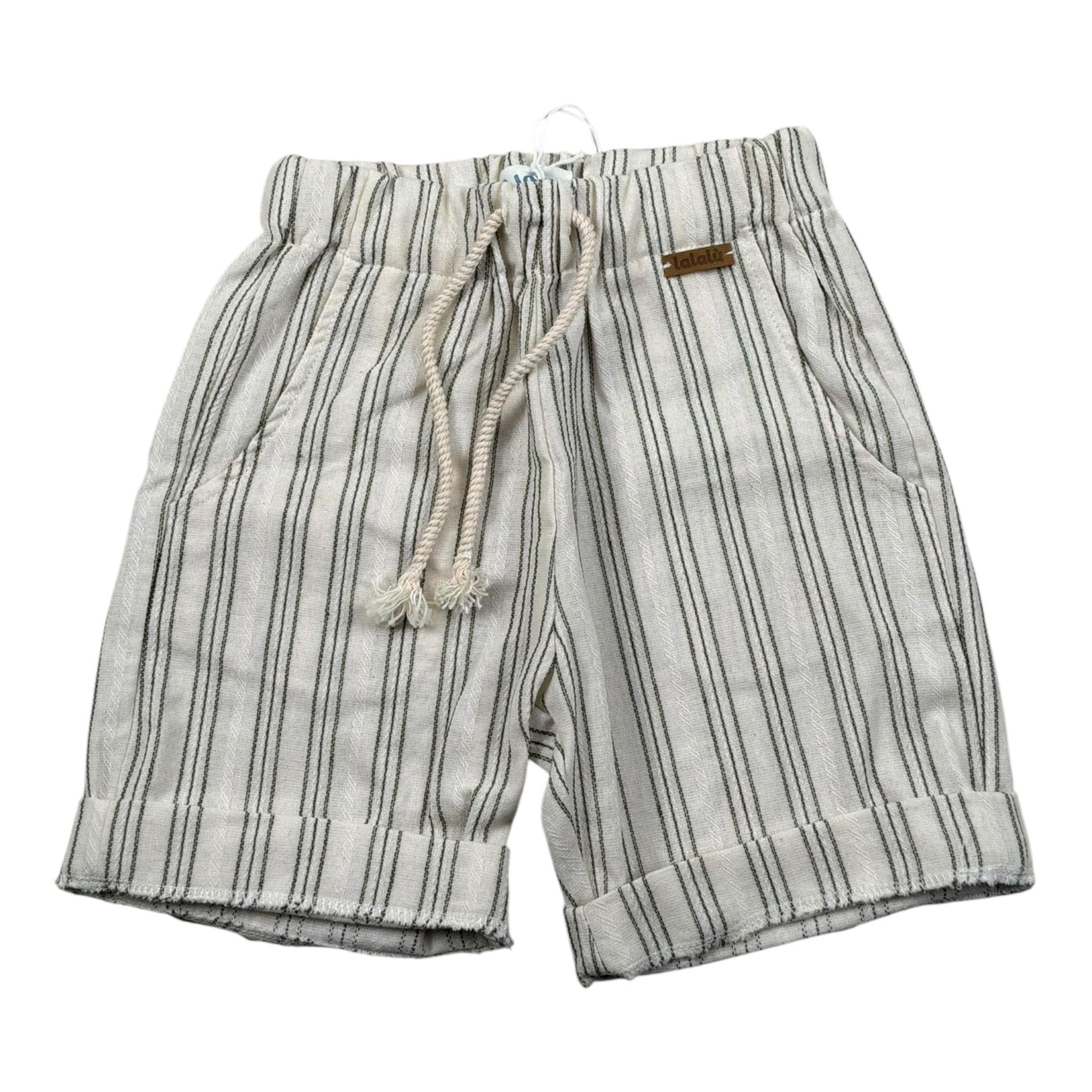 Lalalu' Bermuda Tinta Unita con Fantasia A Righe per Bambino BML50PBX PANNA LALALU'