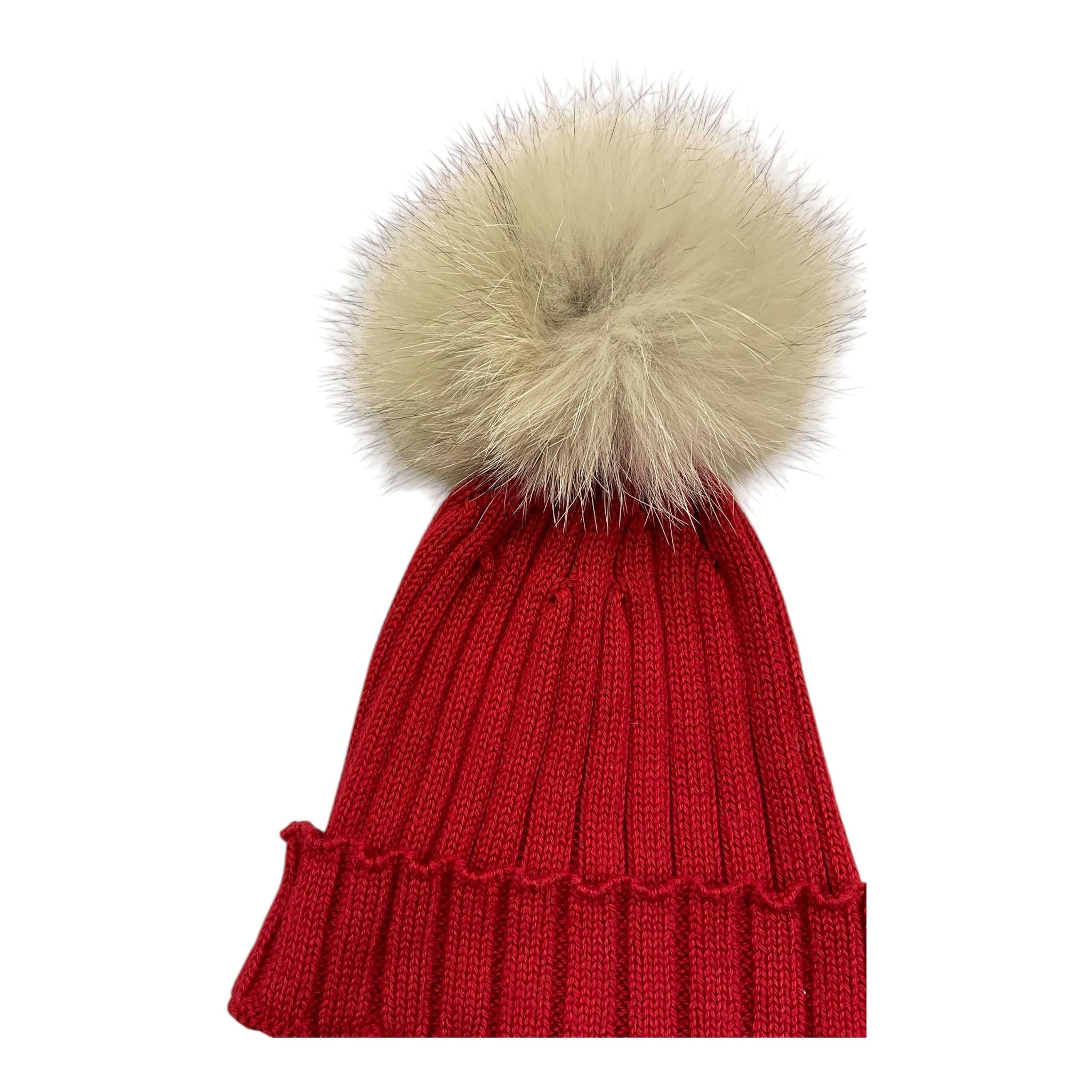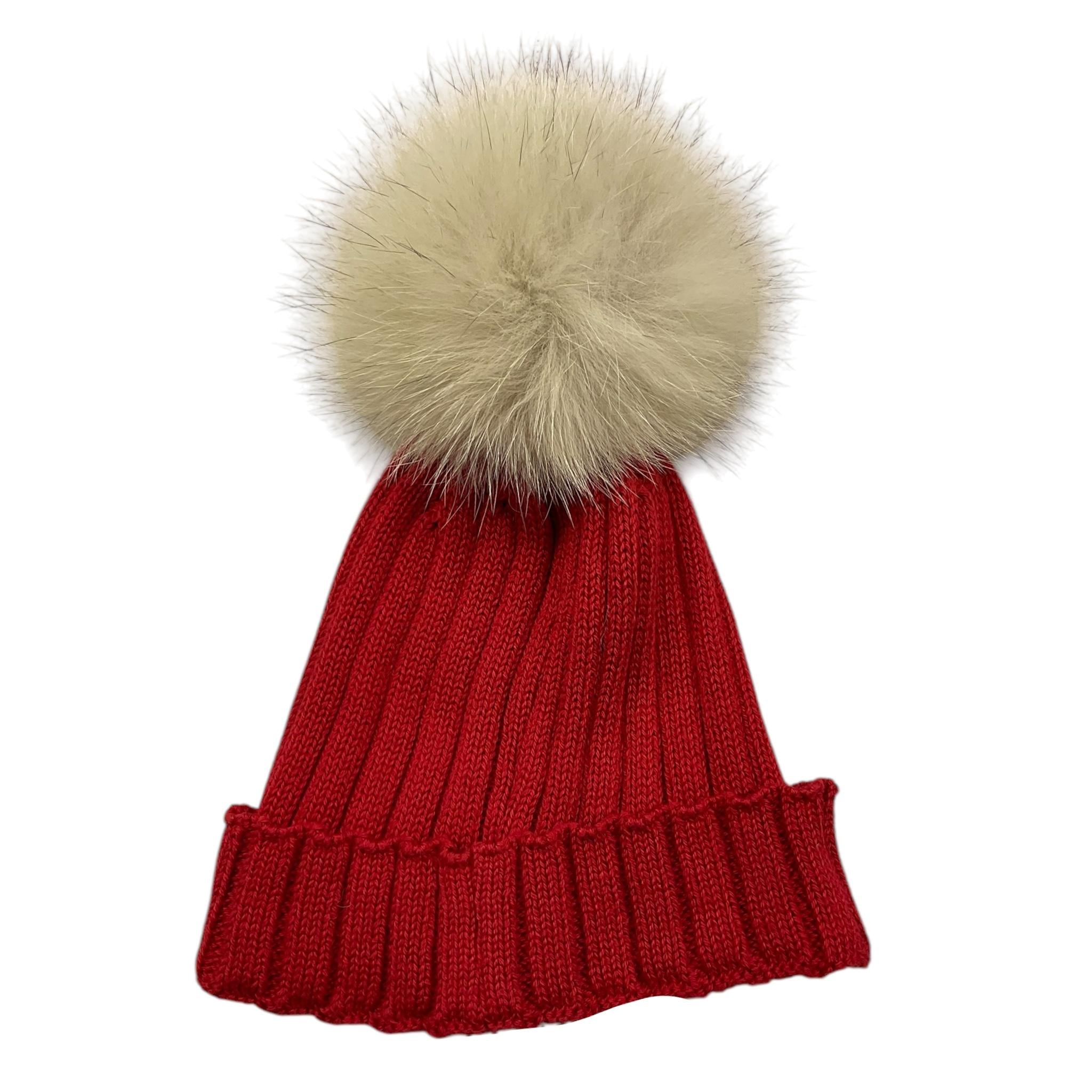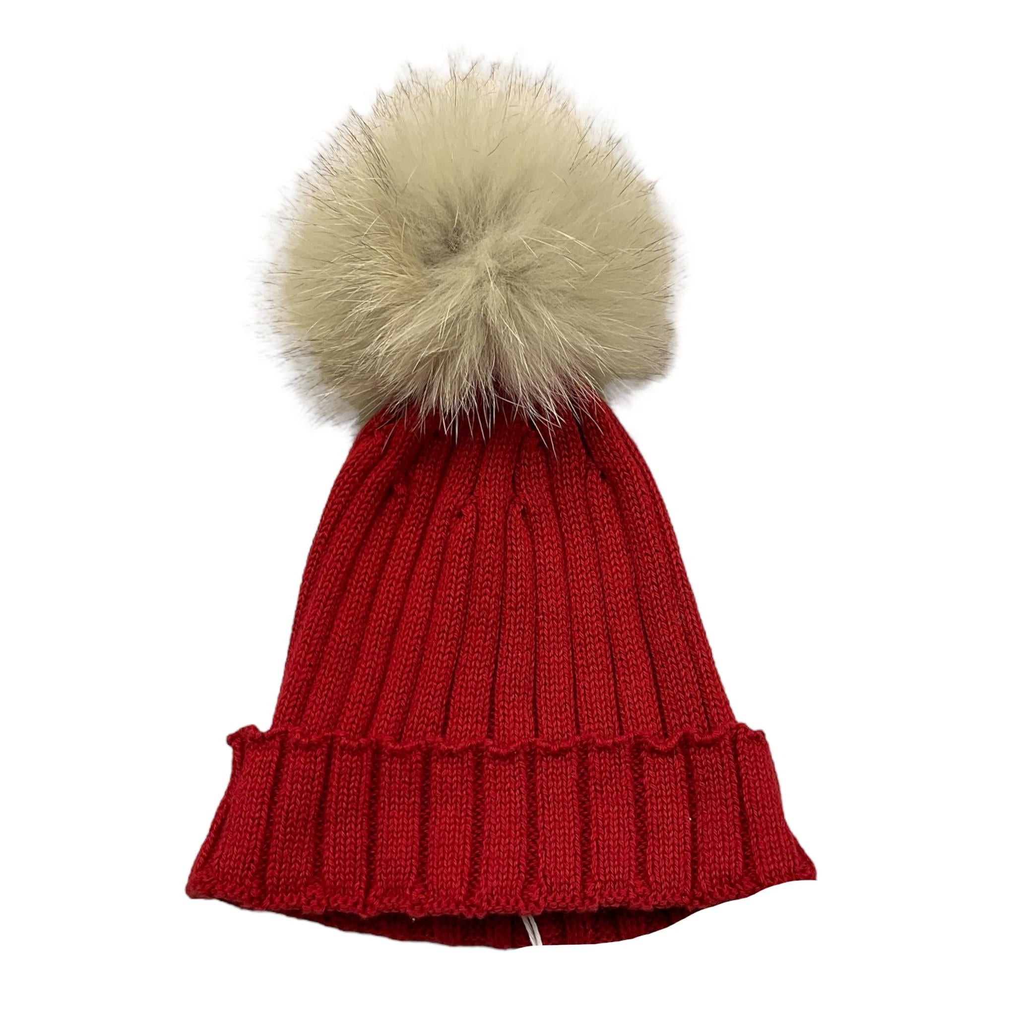 LALALU' cappello tinta unita con pon pon Rosso per Neonato
