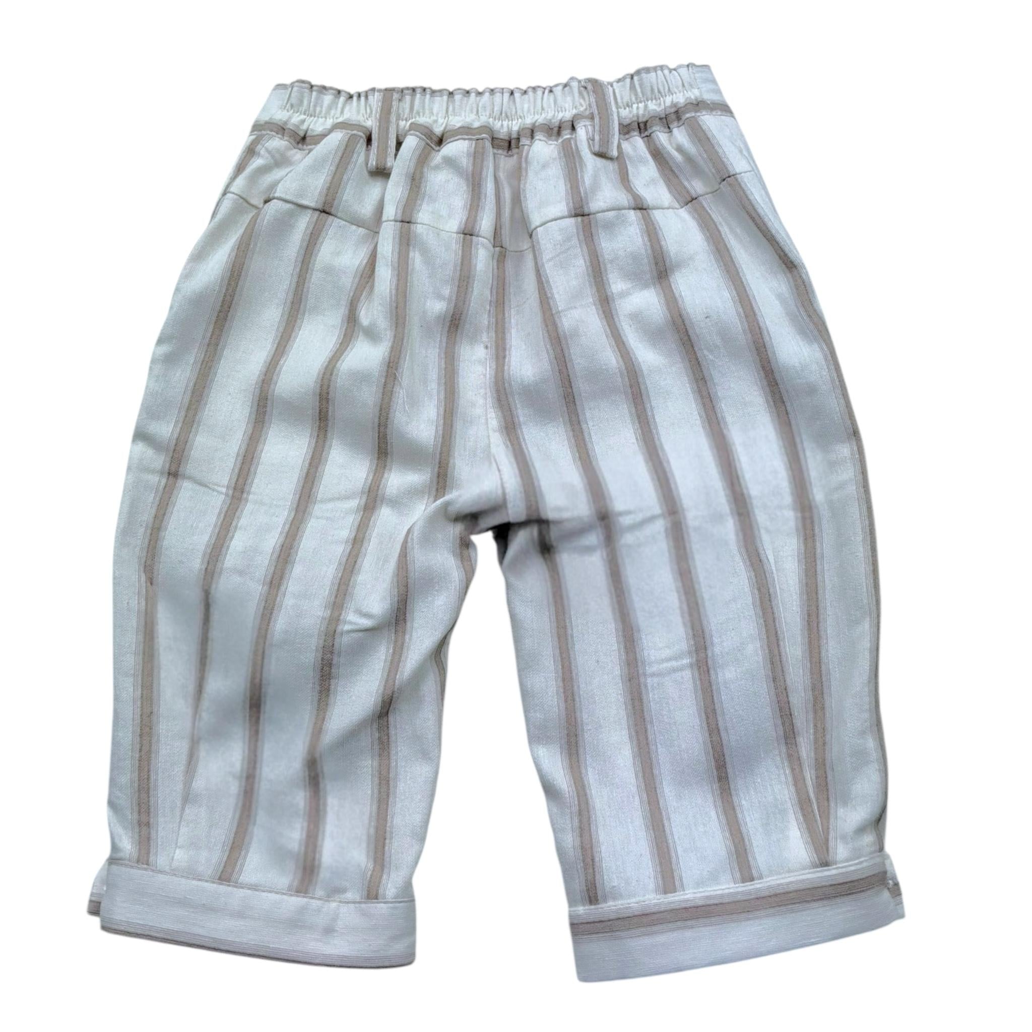 Manuel & Frank Pantalone Tinta Unita con Fantasia A Righe per Neonato