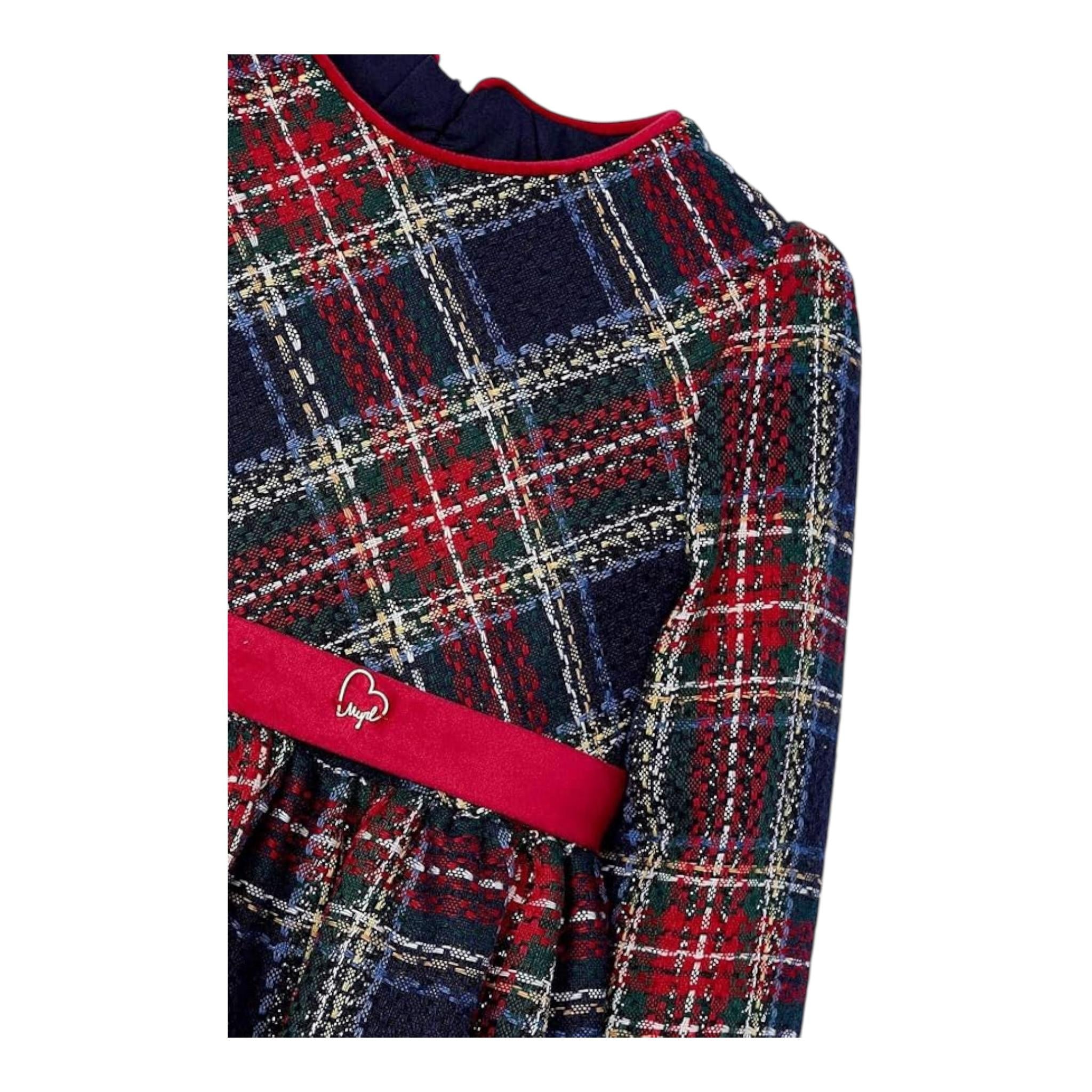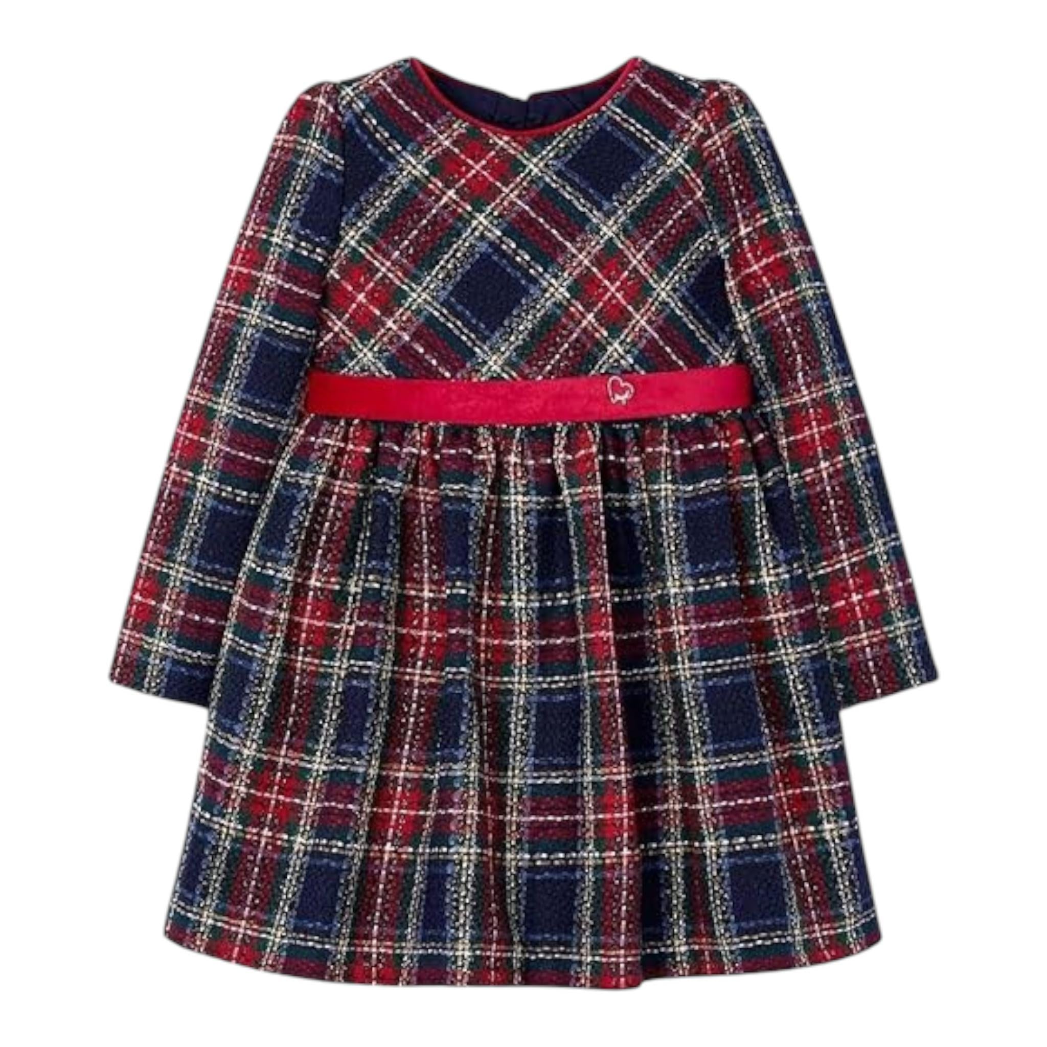 MAYORAL abito tinta unita con fantasia a quadri e cintura Blu per Bambina