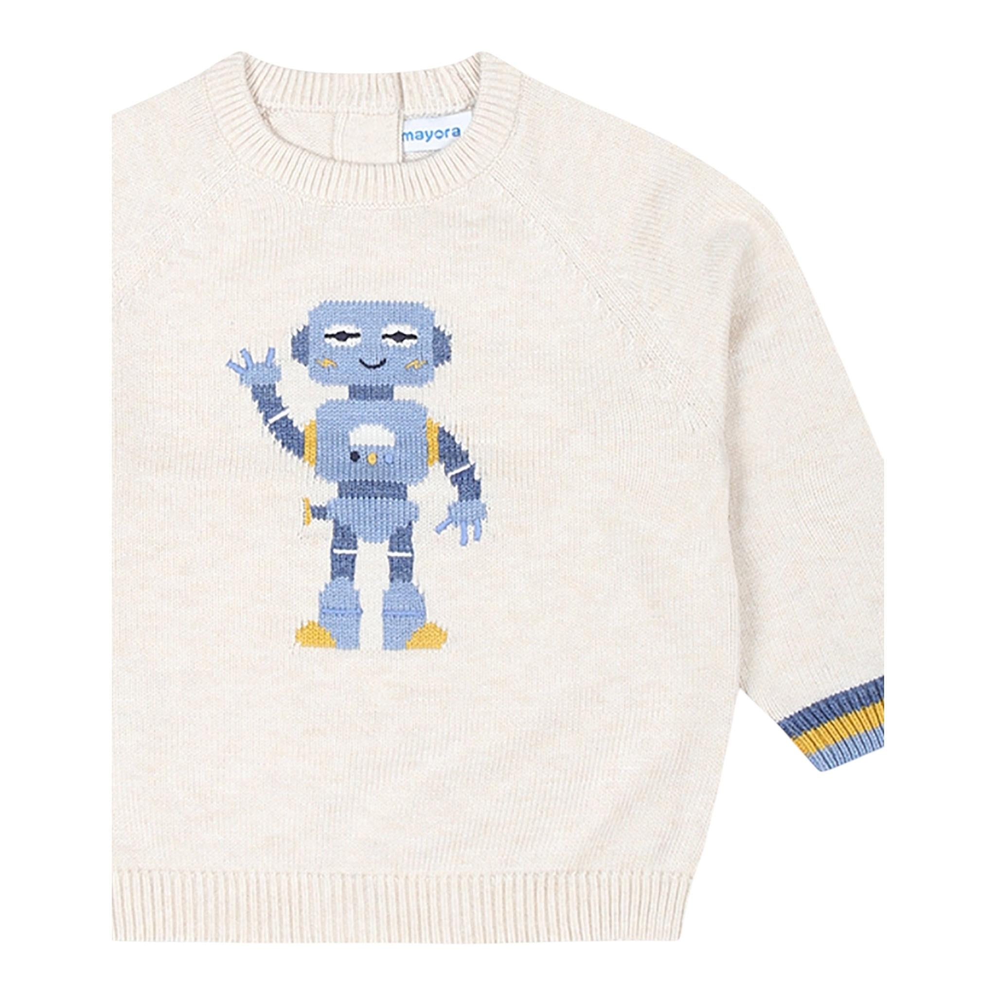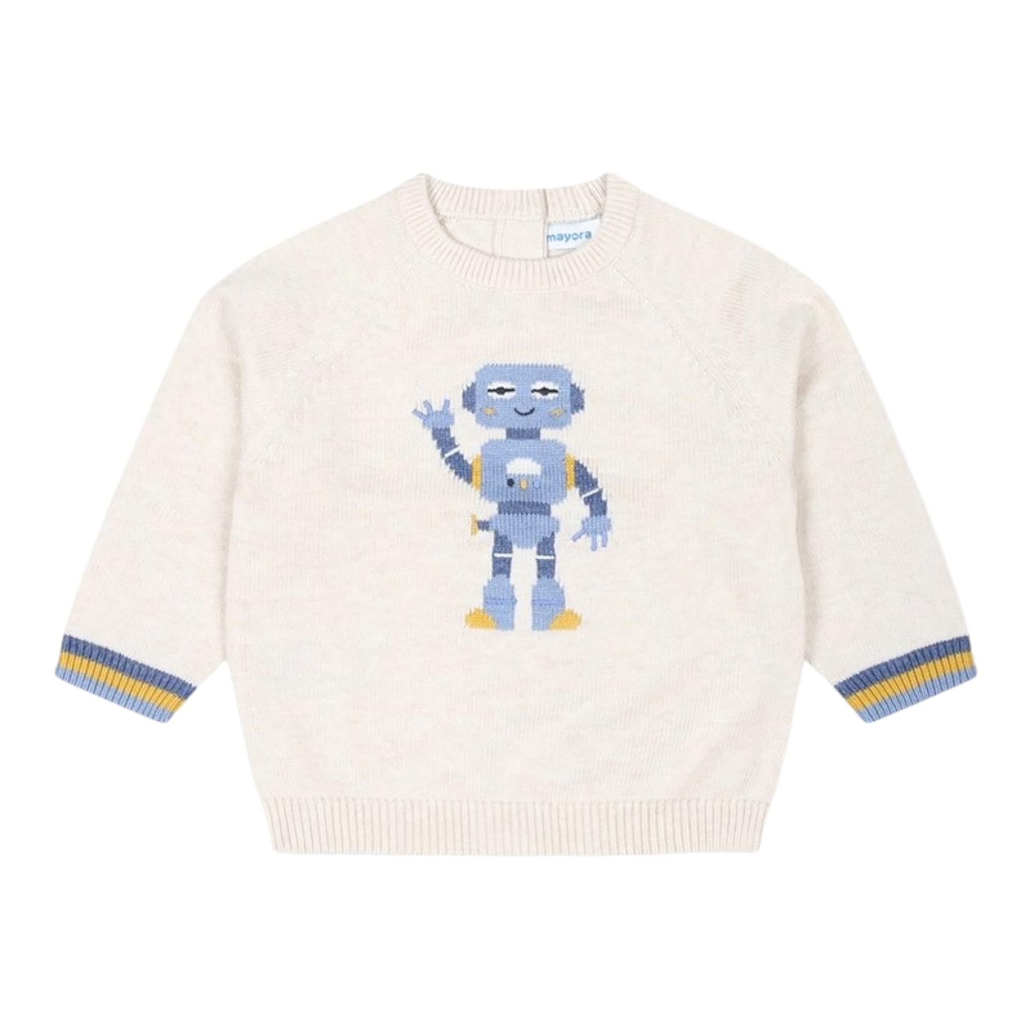 MAYORAL maglia tinta unita girocollo con stampa firmata MAYORAL. Realizzata in: 60% cotone 30% poliammide 10% lana. Articolo per: Neonato