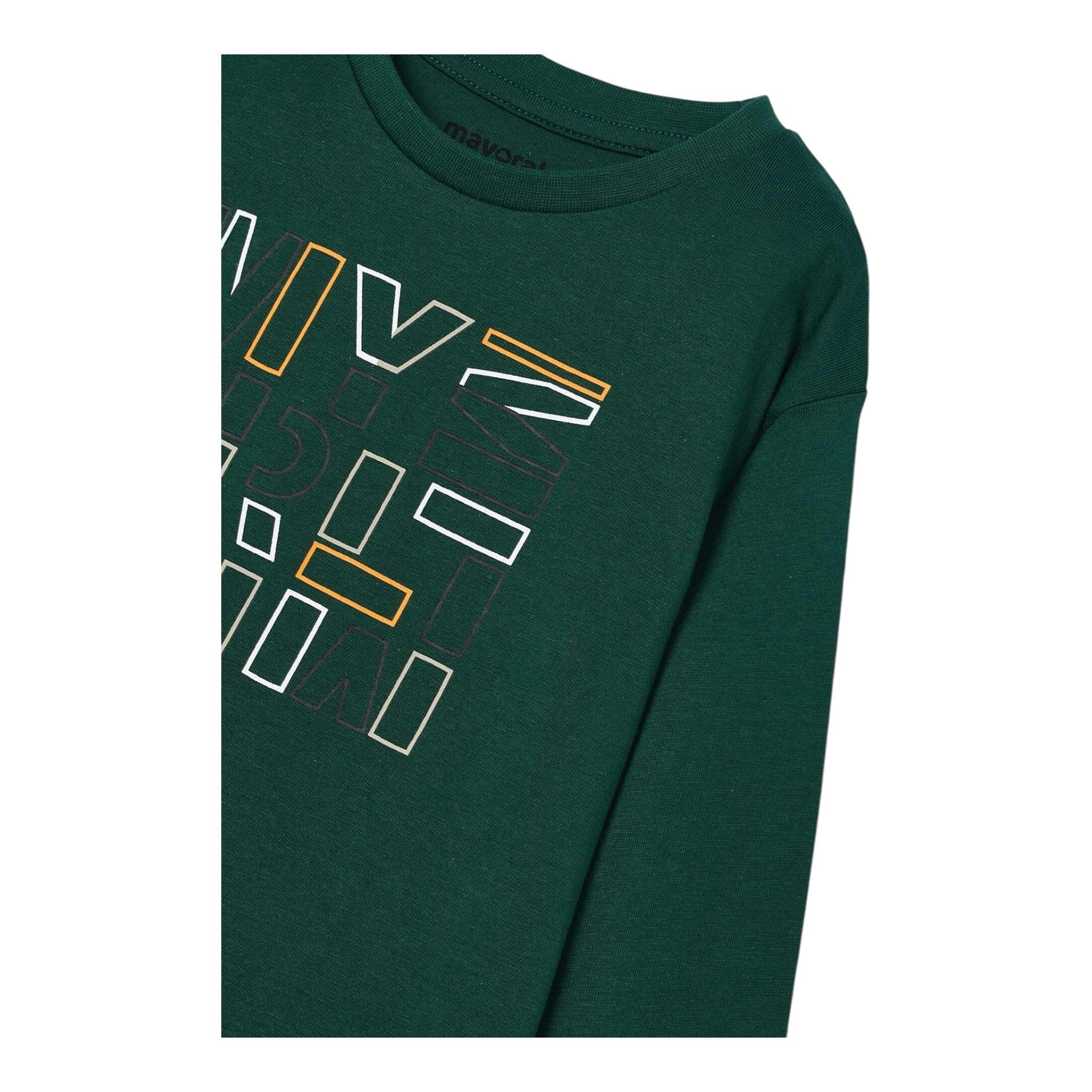 MAYORAL shirt girocollo tinta unita con stampa Verde per Bambino
