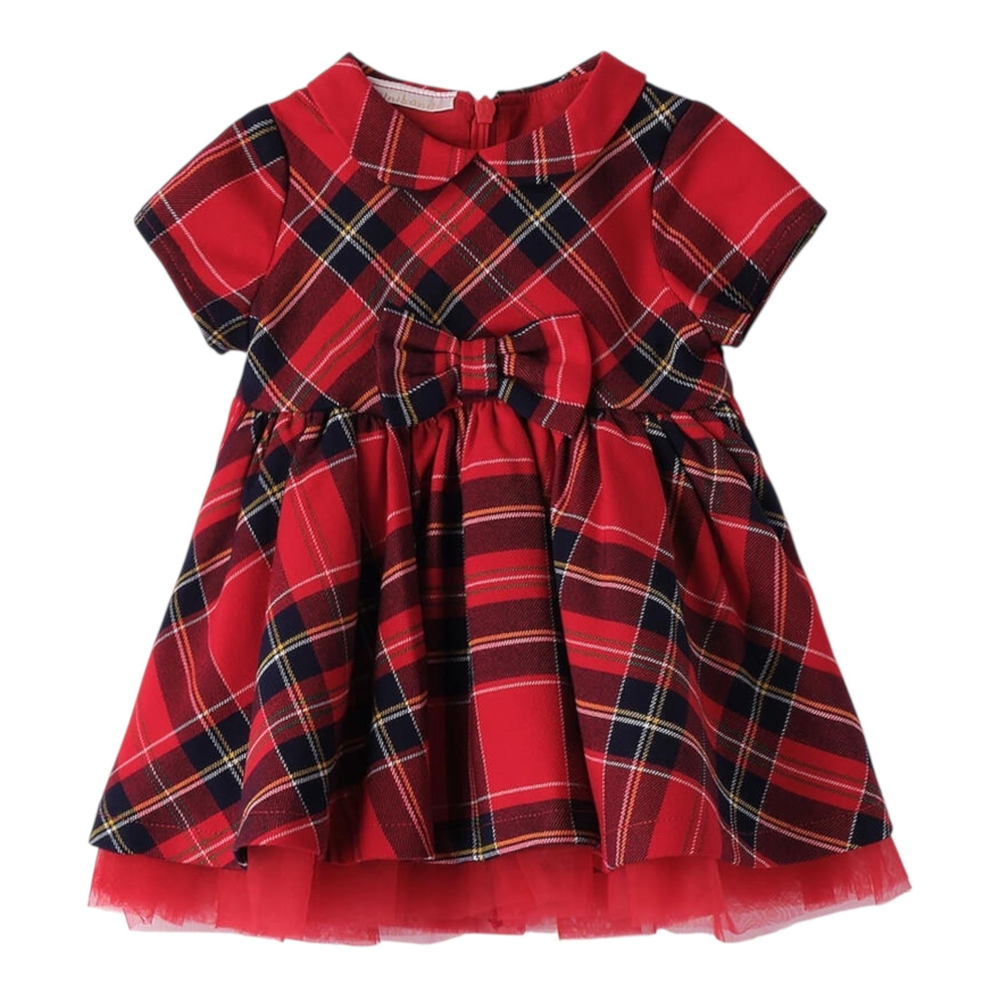 MINI BANDA abito mezza manica tinta unita con fantasia scozzese Rosso per Neonata