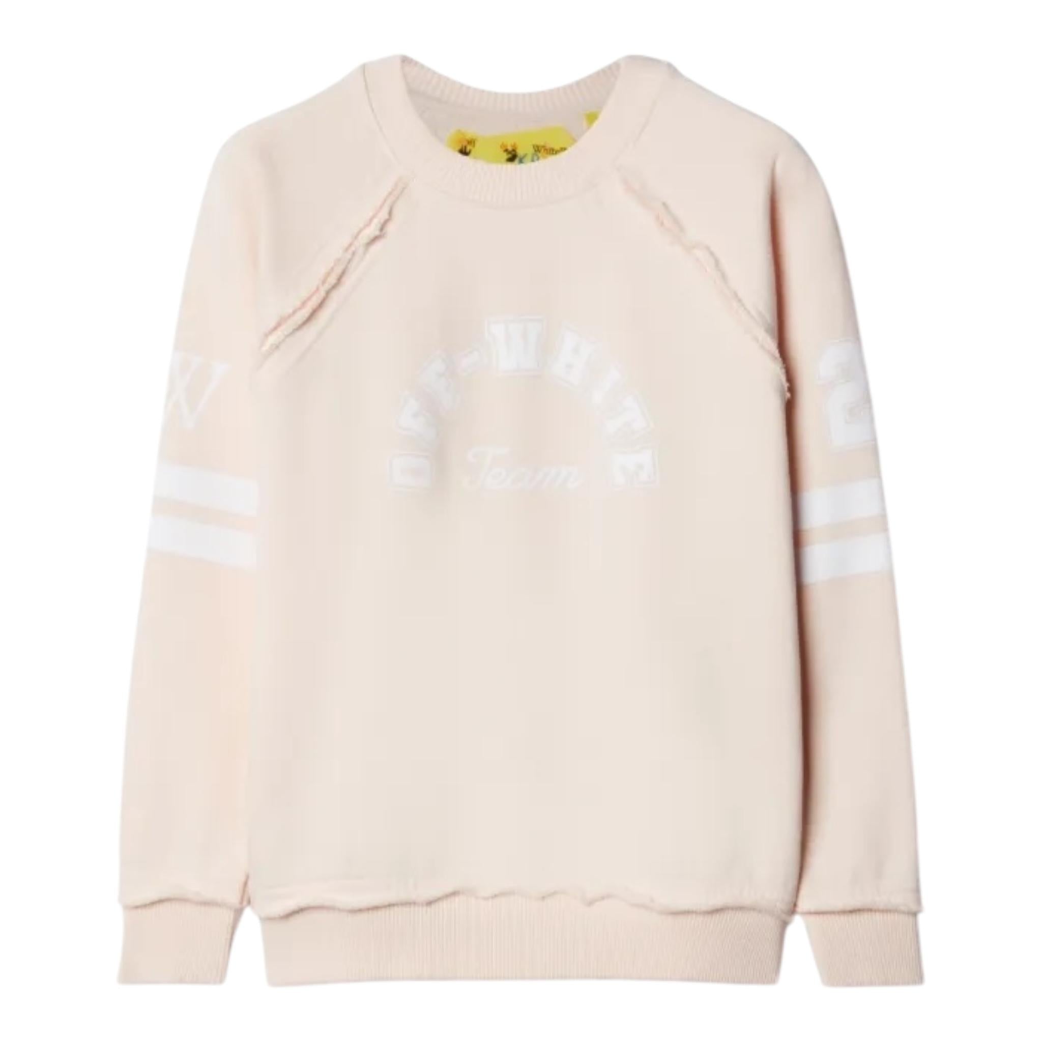 Off-White Felpa Girocollo Tinta Unita con Stampa per Bambina