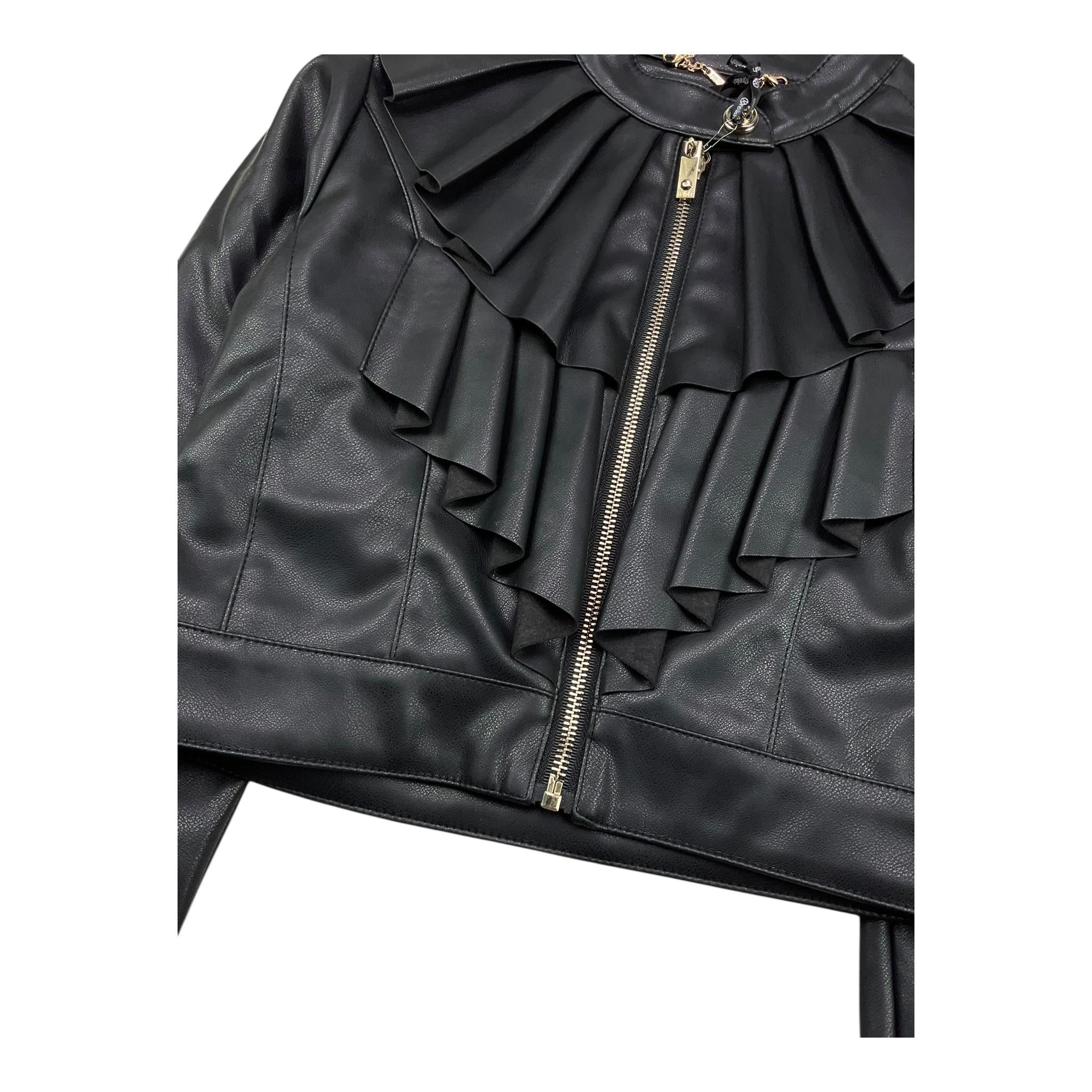 RELISH chiodo in ecopelle tinta unita Nero per Bambina