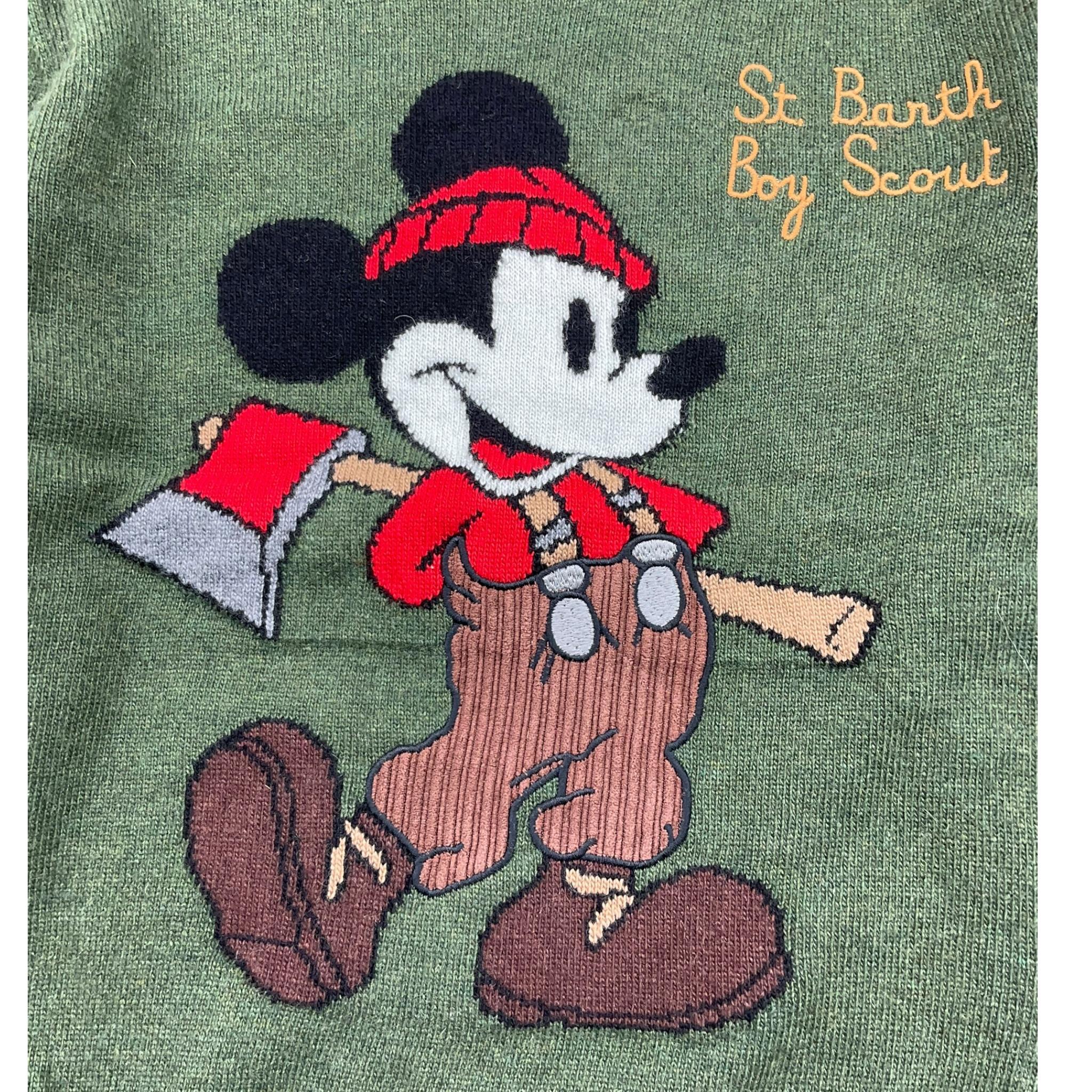 SAINT BARTH maglia girocollo tinta unita con stampa topolino Verde per Bambino