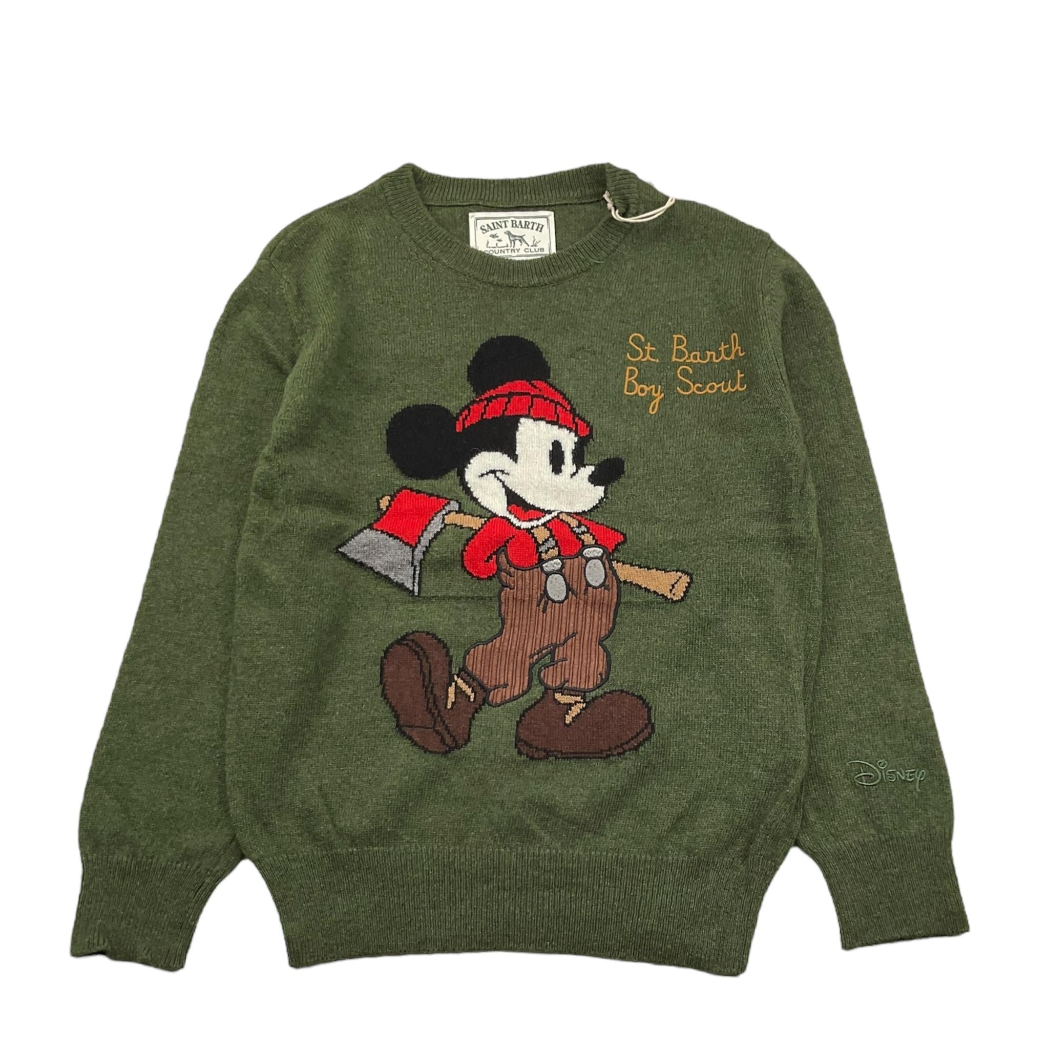 SAINT BARTH maglia girocollo tinta unita con stampa topolino firmata SAINT BARTH. Realizzata in: 35% poliammide 30% lana 30% viscosa 5% cashmere. Articolo per: Bambino