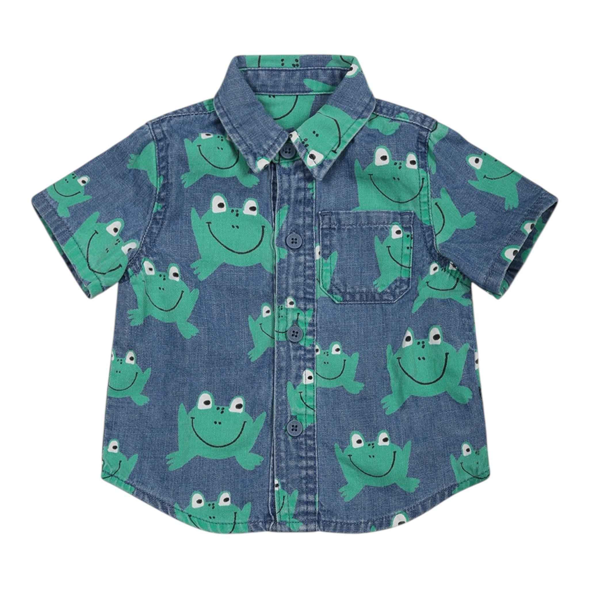 Stella Mccartney Camicia Mezza Manica Tinta Unita con Stampa Rane per Neonato