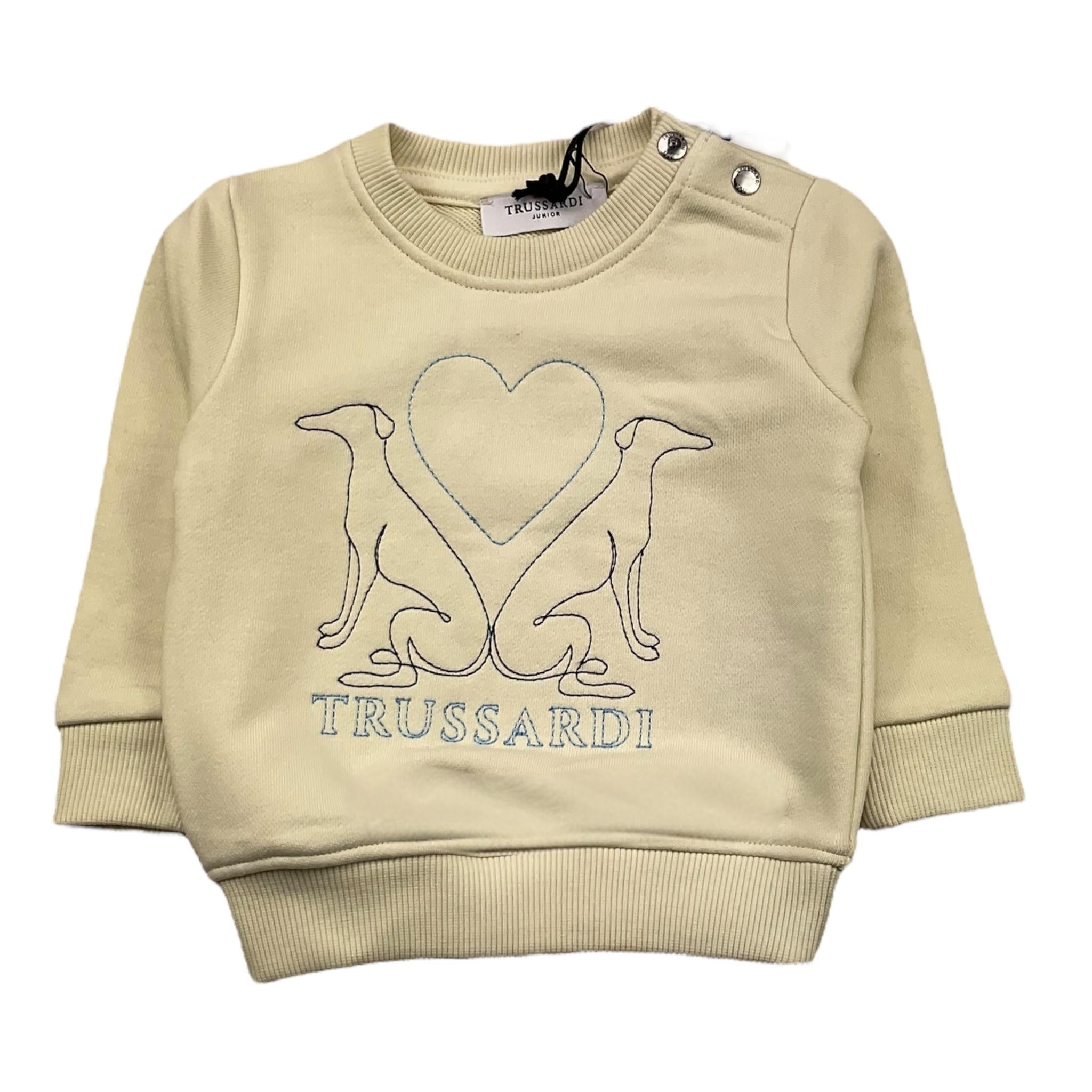 TRUSSARDI felpa chiusa girocollo tinta unita Panna per Neonato