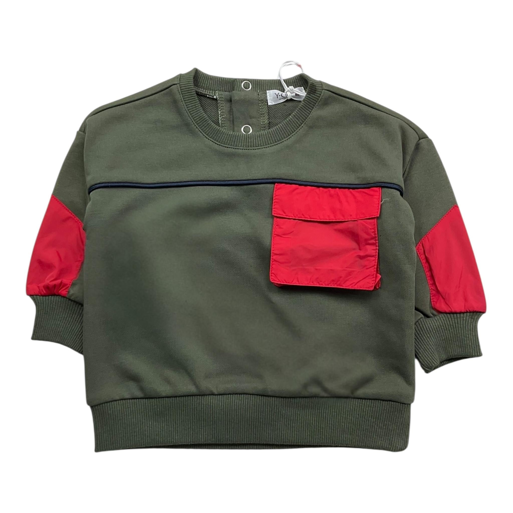 Y-CLU felpa tinta unita con taschino Verde per Neonato